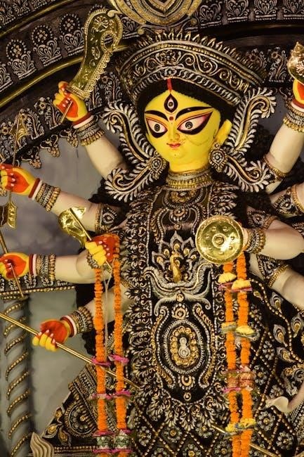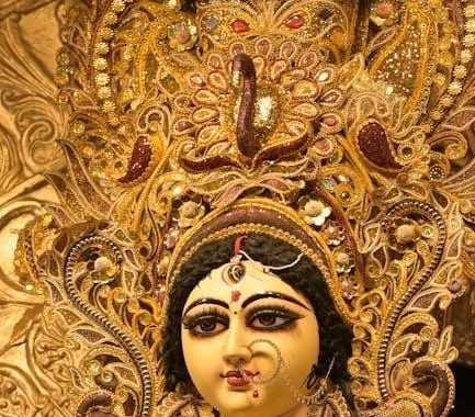 Arjuna composed this powerful hymn seeking Durga’s blessings before battle. Telugu PDF versions are readily available for devotees, facilitating easy access and chanting practices.