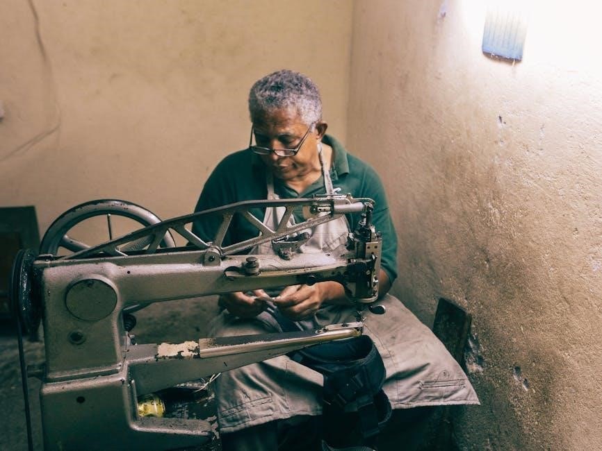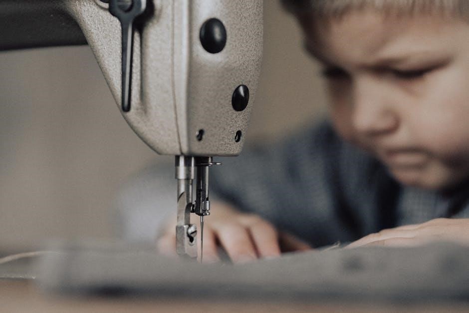 To wind the bobbin, place the thread on the spool pin and pull it through the bobbin winder guide․ Turn the handwheel to engage the bobbin winder, then press the foot pedal to start winding․ Stop when the bobbin is full․ Cut the thread, leaving a small tail․ Insert the bobbin into the bobbin case, ensuring the notch aligns with the case․ Pull the thread gently to seat the bobbin․ Cover the bobbin case and ensure it clicks into place․ Properly winding and inserting the bobbin ensures even stitching and prevents thread tangles․ Always refer to the manual for specific diagrams to avoid misalignment․ Correct bobbin installation is essential for smooth machine operation and consistent stitch quality․